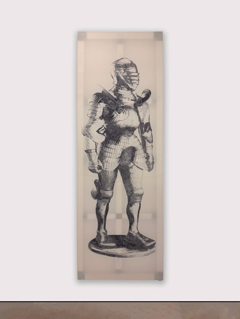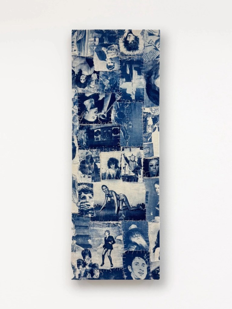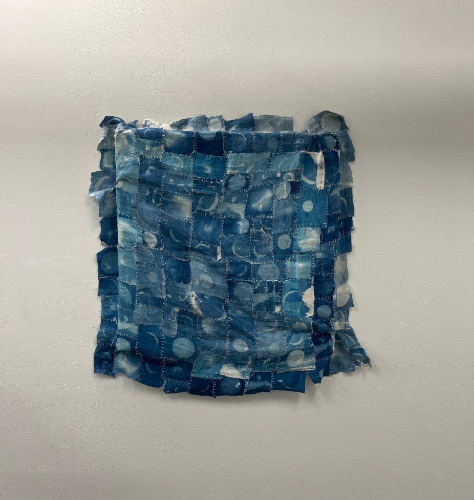 Cyanotype printed on linen, applied on natural silk
